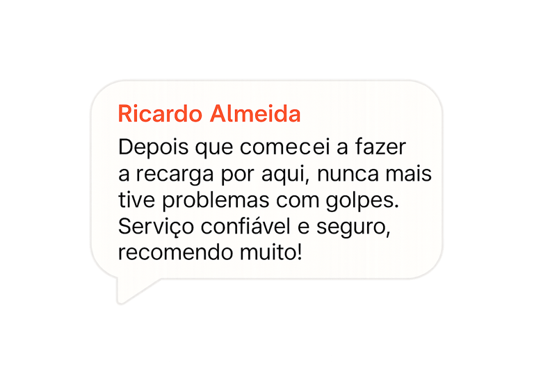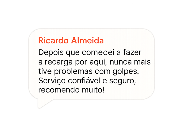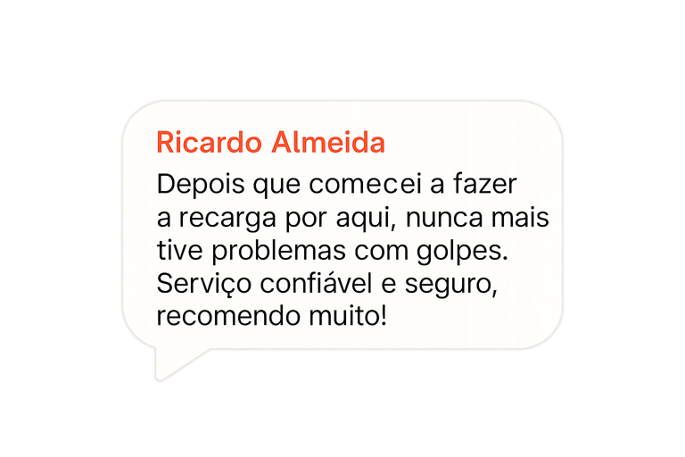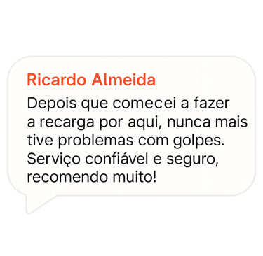 "A recarga foi muito rápida. Estou super satisfeito com a agilidade do serviço!"